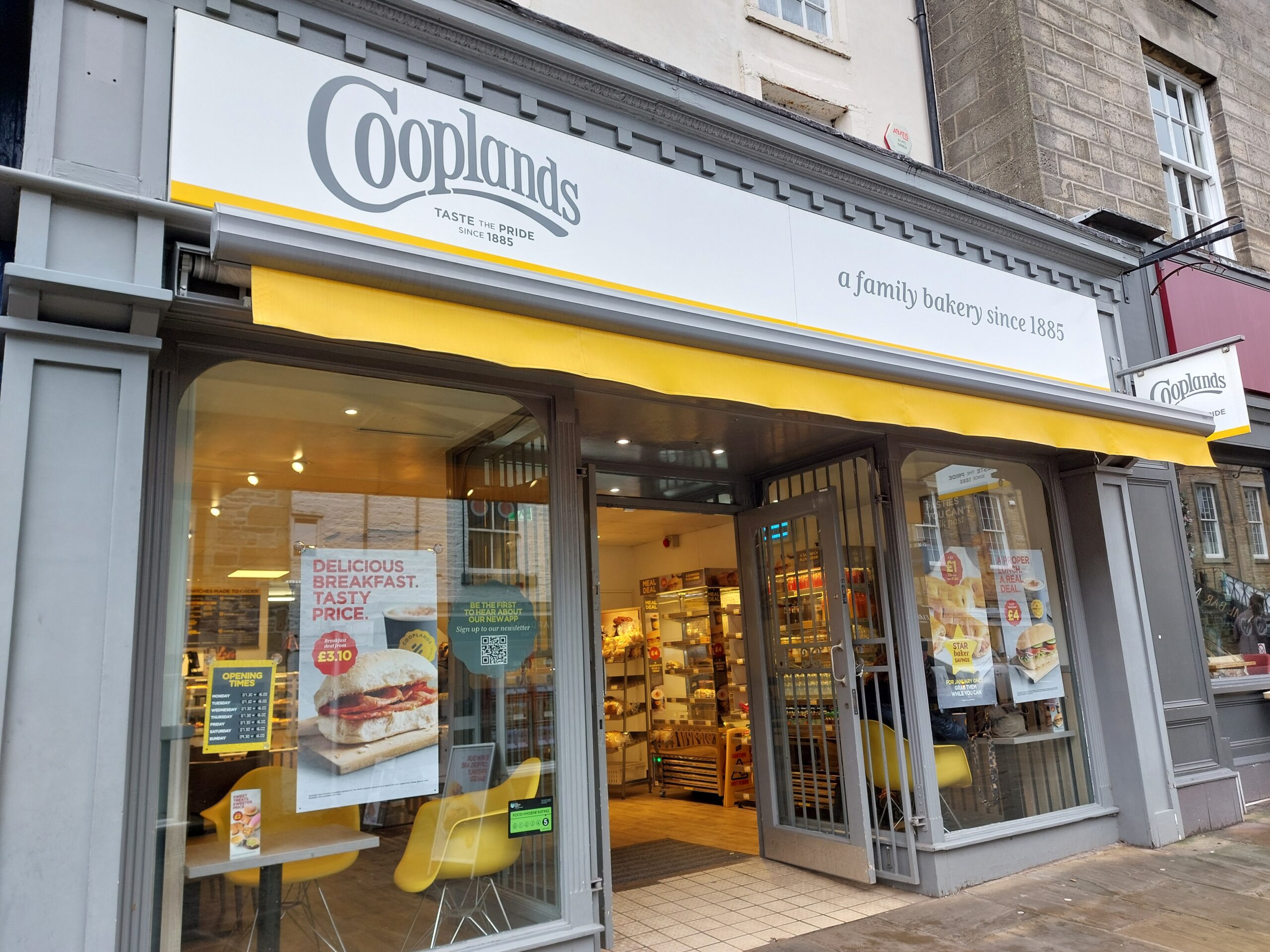 Cooplands in Skipton is a well‑liked local bakery situated on Sheep Street, where it has become a convenient stop for fresh, affordable baked goods.