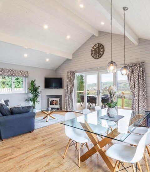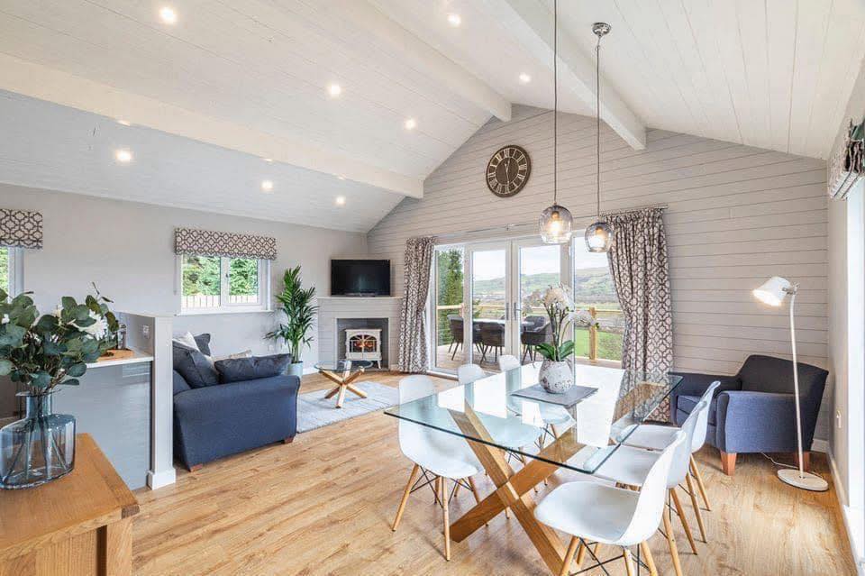 Alongside the main farmhouse, the site also includes contemporary self‑catering lodges and a couples’ cottage, each designed with stylish interiors and private hot tubs. These lodges feature infinity balconies overlooking the surrounding countryside, offering a secluded setting while still being close to Skipton’s shops, cafés and attractions.